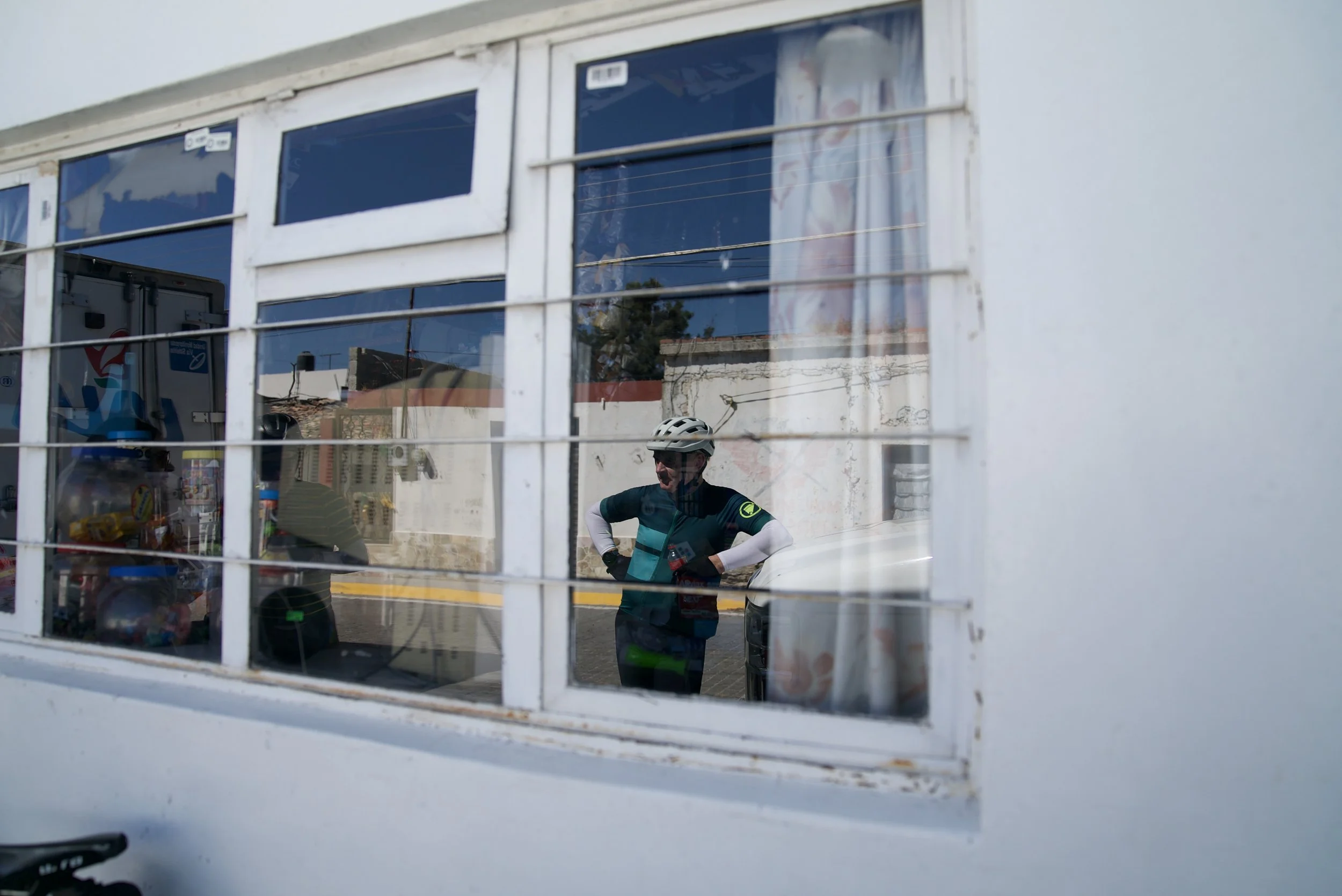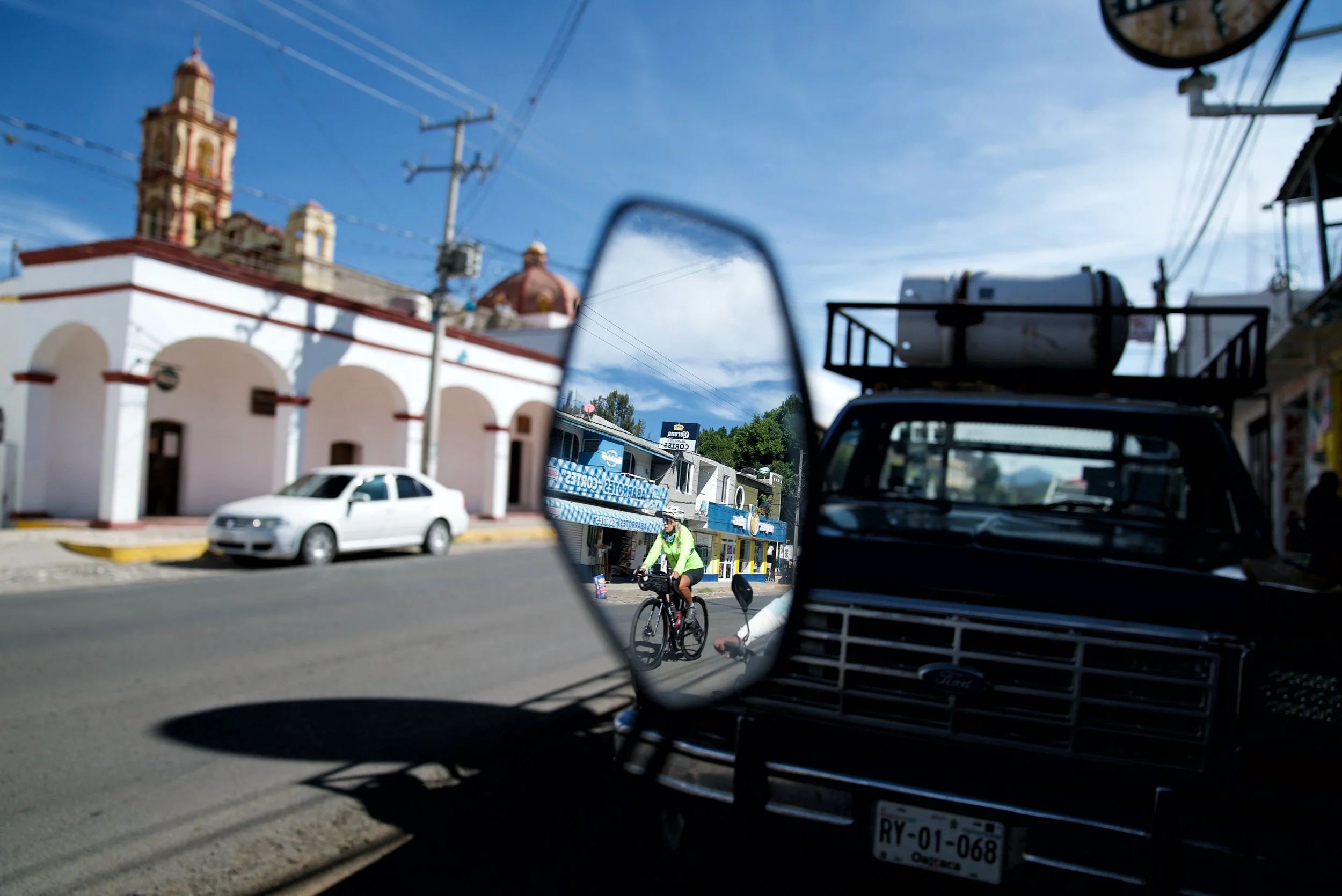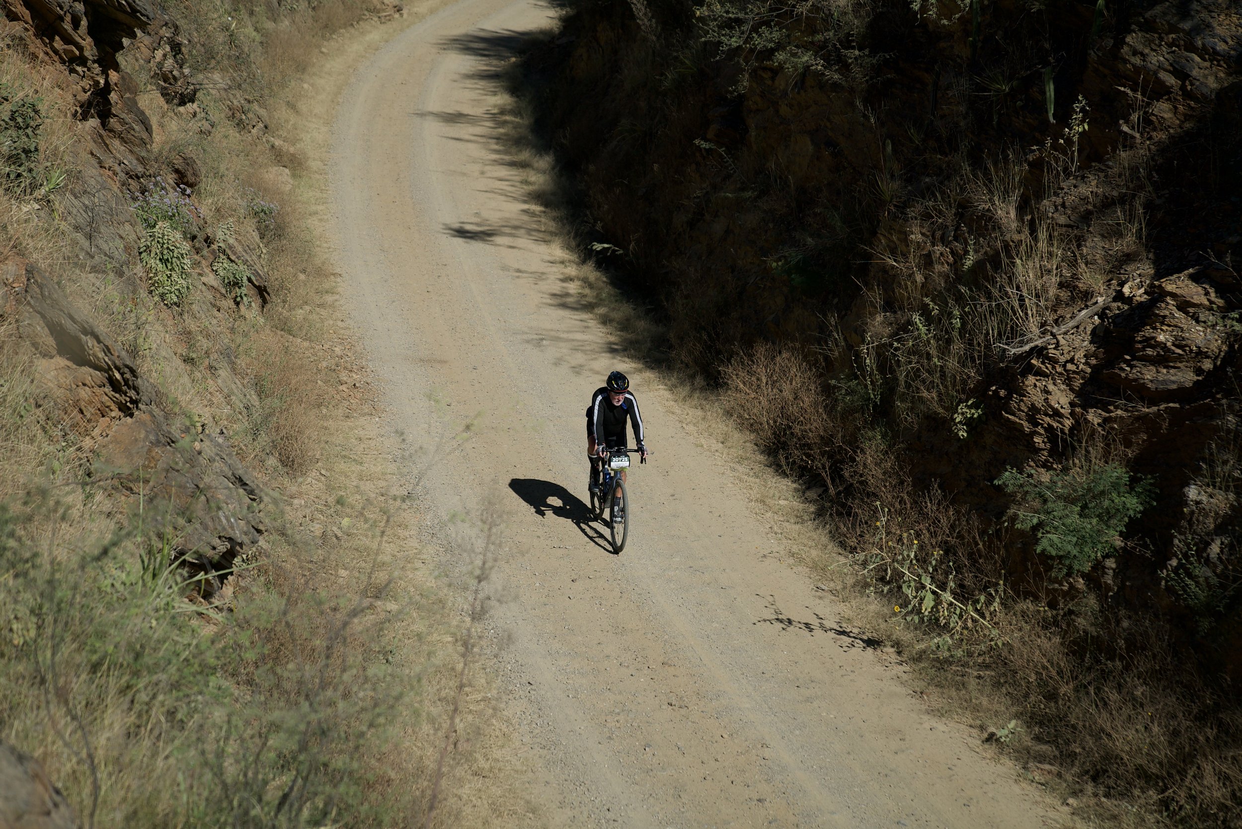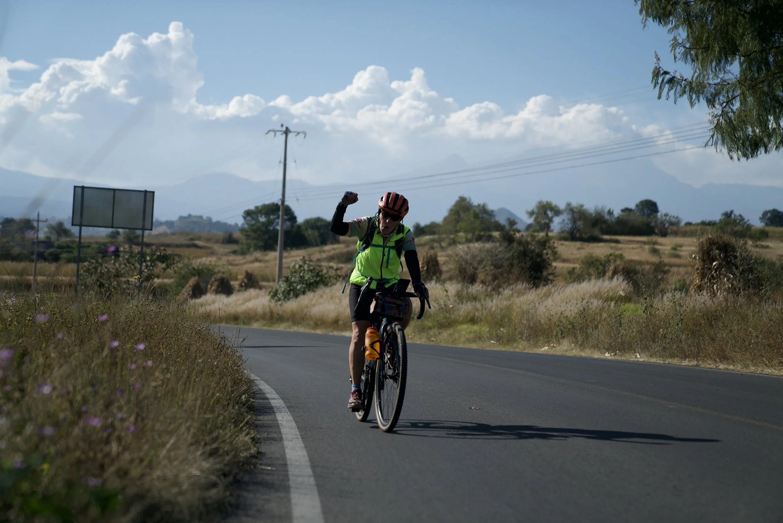 Juan Bianchi gives a thumbs up as he rides through the Sierra Madre mountains.jpeg