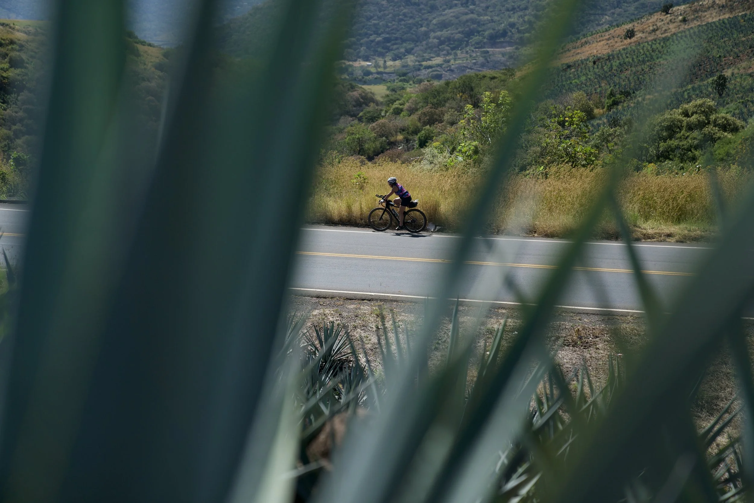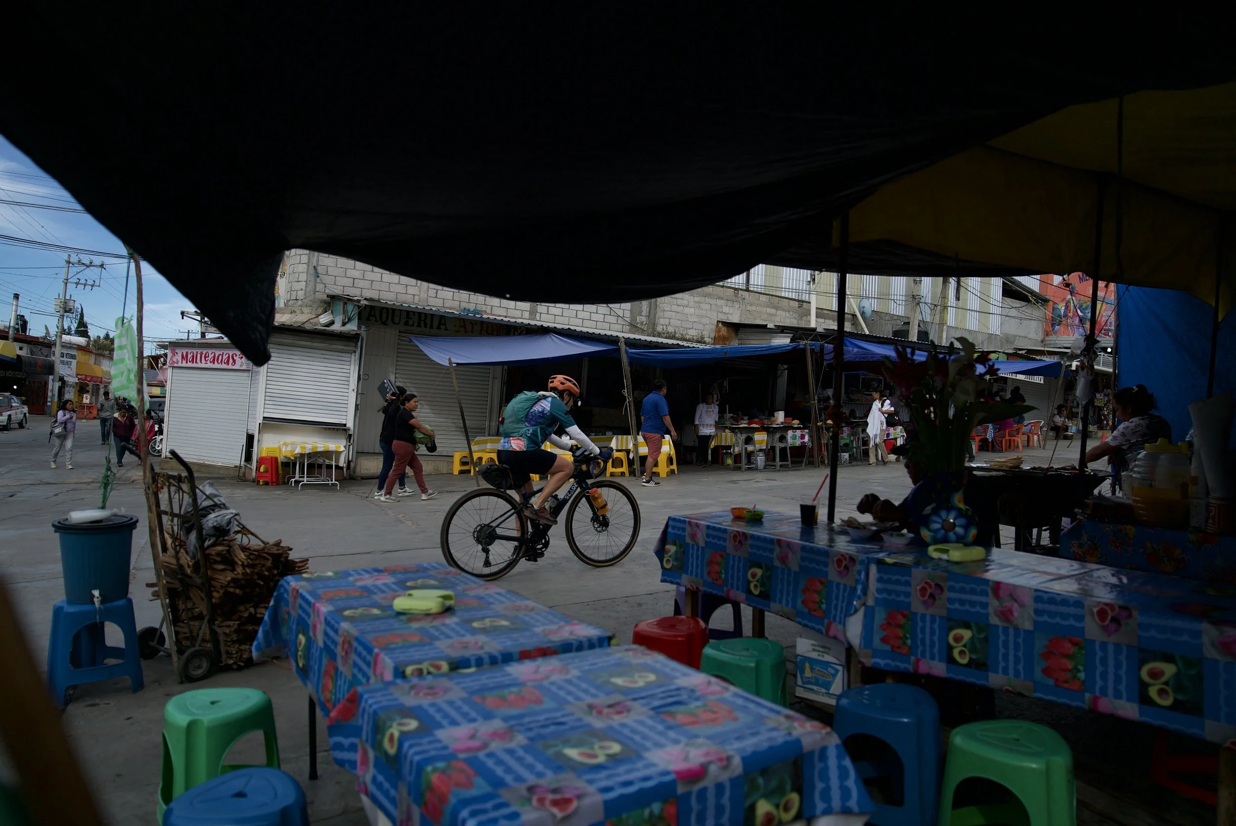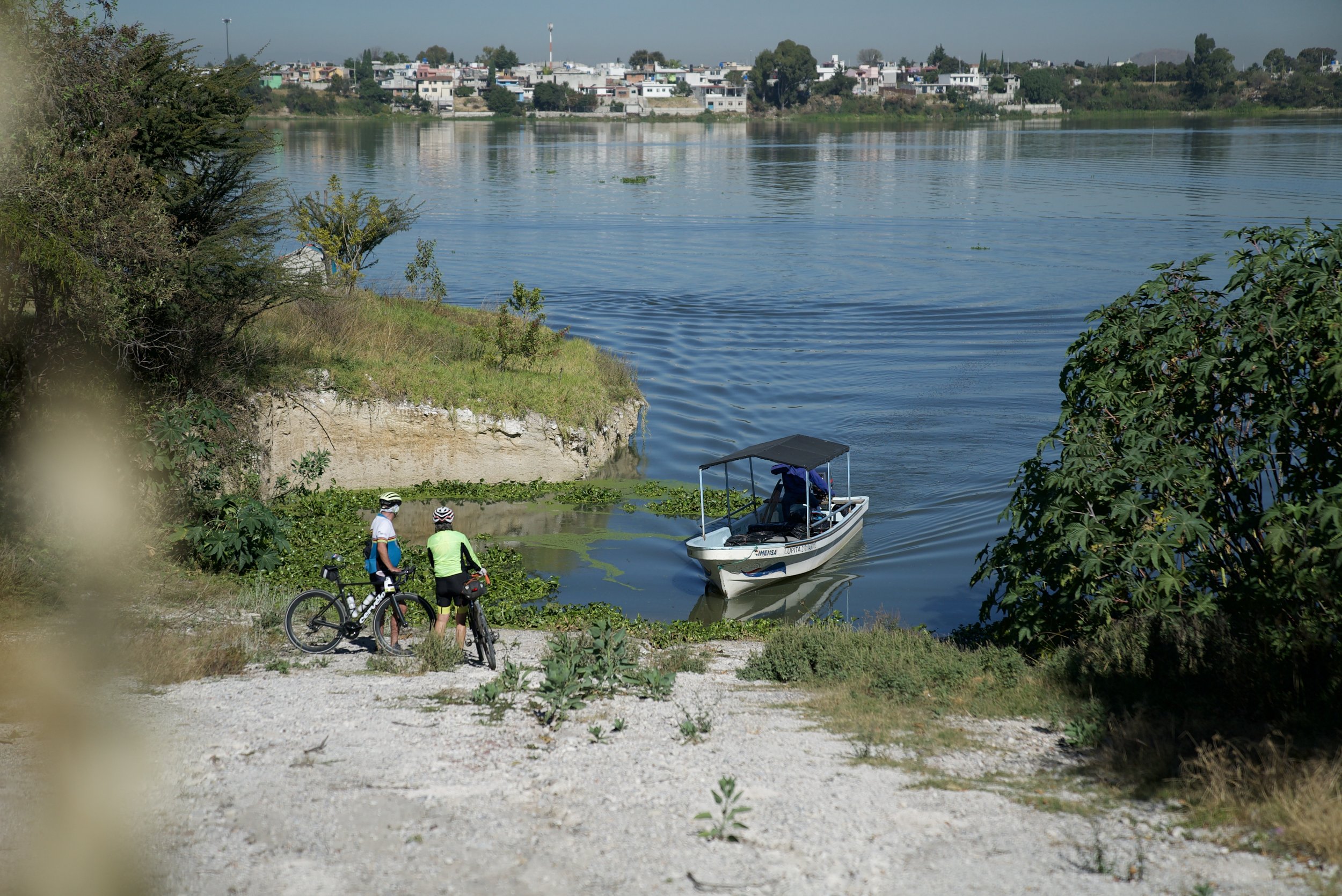 Cindy Rogers rides past locals through a small town alongside Lake Chapala.jpeg